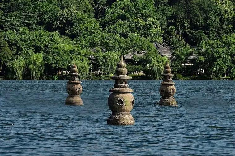 人民币 1 元纸币背面原型,三座石塔始建于北宋,中秋赏月时塔内点灯如 "天上月 + 水中月 + 塔中月" 三重幻境
