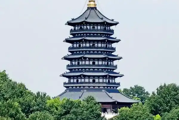 原塔因白娘子传说闻名,现塔为重建,乘电梯至顶层可俯瞰西湖全景,黄昏 "雷峰夕照" 是十景压轴