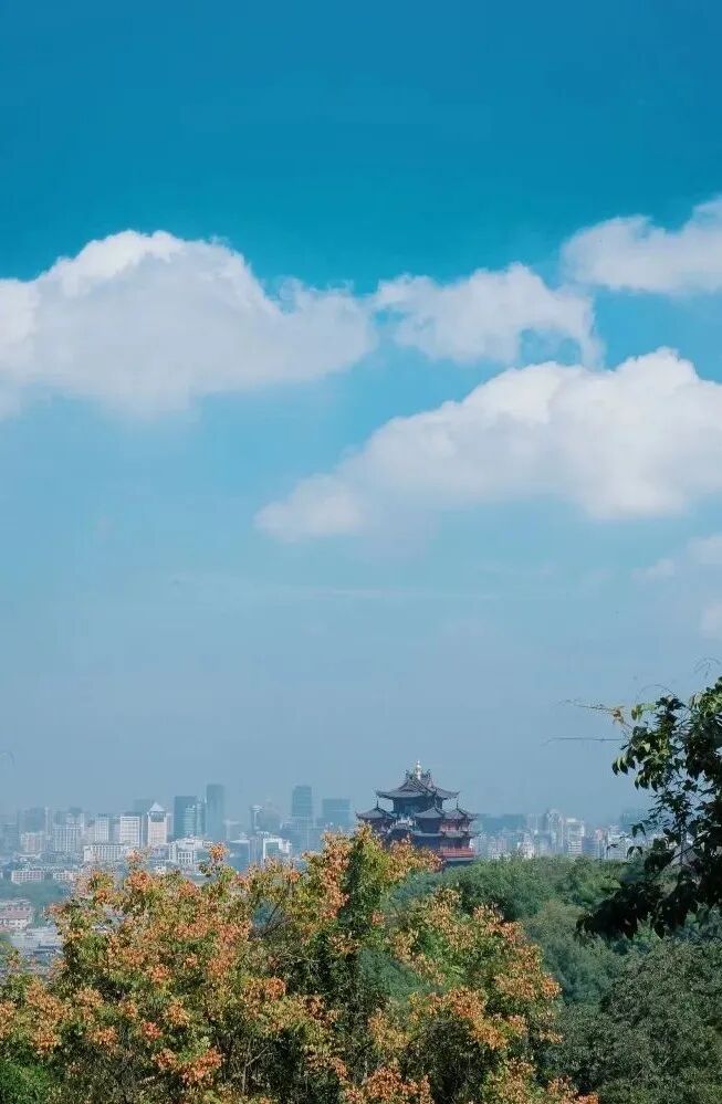想起傍晚出门时,尚被整日的案牍劳形所困,太阳穴突突地跳。此刻站在山风里,神清气爽。吴山不语,却如一位老友,默默唤你看:石阶旁丛生的蓬草,看暗香浮动的花枝,看拾阶而上的消食居民。这些寻常景象,在山的高度凝视下,成了生活的偈语。