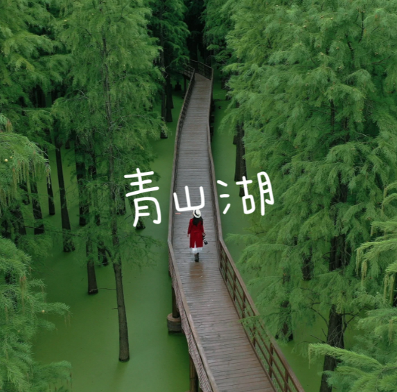 青山湖北侧千亩池杉林生长在水中, 春夏绿意盎然, 秋日红杉似火; 乘船穿梭其间,如入童话世界。沿湖南绿道蜿蜒曲折适合骑行或徒步; 湖畔琴山蓝湾民宿错落临水而居, 推窗见青山绿水惬意十足。